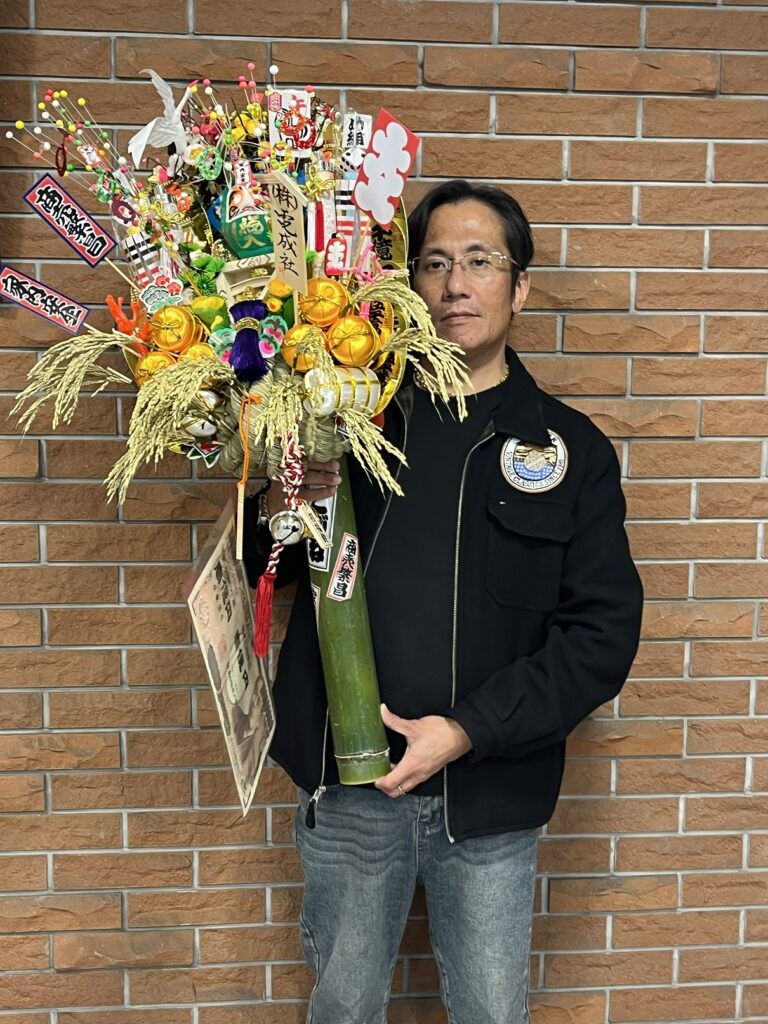 去年よりひと回り大きくなった熊手と社長‼